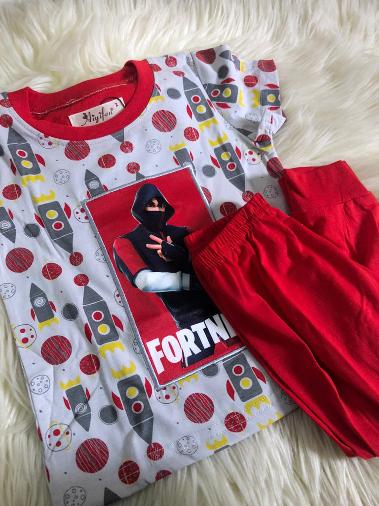اجعلي صغيرك ينعم بالراحة الكاملة باختيارك له هذا الطقم الرائع، يتكون من تيشيرت بياقة مستديرة وطبعات جذابة،بنطلون بيجاما بخصر مطاطي مريح، مصنوع من خامة عالية الجودة، لطيفة على البشرة لارتداء مريح طوال اليوم.