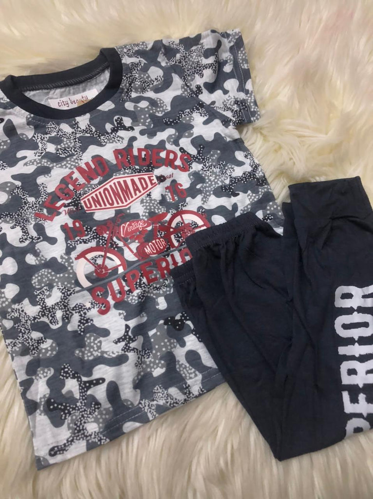 اجعلي صغيرك ينعم بالراحة الكاملة باختيارك له هذا الطقم الرائع، يتكون من تيشيرت بياقة مستديرة وطبعات جذابة،بنطلون بيجاما بخصر مطاطي مريح، مصنوع من خامة عالية الجودة، لطيفة على البشرة لارتداء مريح طوال اليوم.