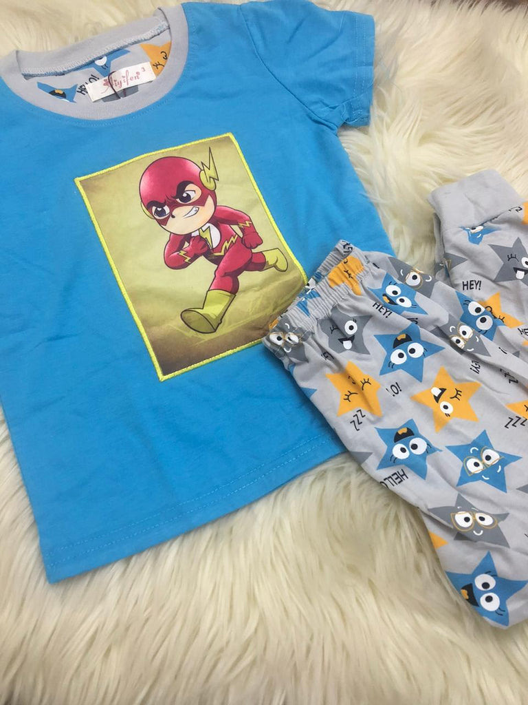 اجعلي صغيرك ينعم بالراحة الكاملة باختيارك له هذا الطقم الرائع، يتكون من تيشيرت بياقة مستديرة وطبعات جذابة،بنطلون بيجاما بخصر مطاطي مريح، مصنوع من خامة عالية الجودة، لطيفة على البشرة لارتداء مريح طوال اليوم.