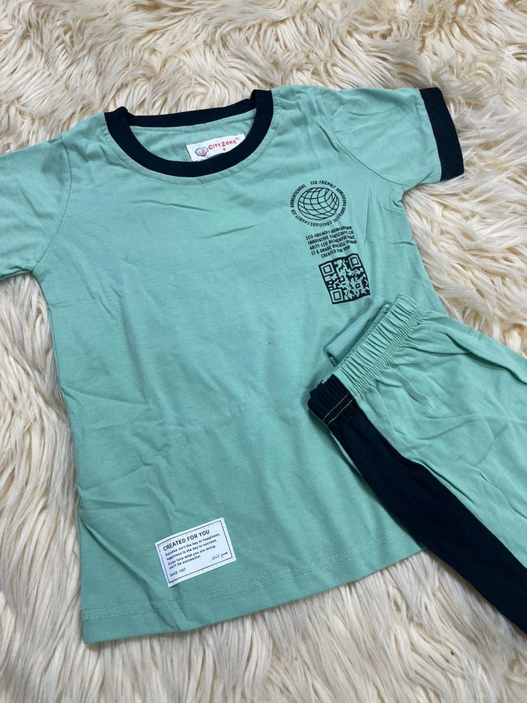 اجعلي صغيرك ينعم بالراحة الكاملة باختيارك له هذا الطقم الرائع، يتكون من تيشيرت بياقة مستديرة وطبعات جذابة،بنطلون بيجاما بخصر مطاطي مريح، مصنوع من خامة عالية الجودة، لطيفة على البشرة لارتداء مريح طوال اليوم.