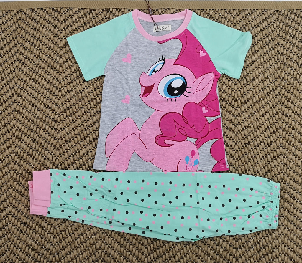 اجعلي صغيرتك تنعم بالراحة الكاملة باختيار لها هذا الطقم الرائع، يتكون من تيشيرت بياقة مستديرة وطبعات جذابة،وبنطلون بيجاما بخصر مطاطي مريح، مصنوع من خامة عالية الجودة، لطيفة على البشرة لارتداء مريح طوال اليوم.