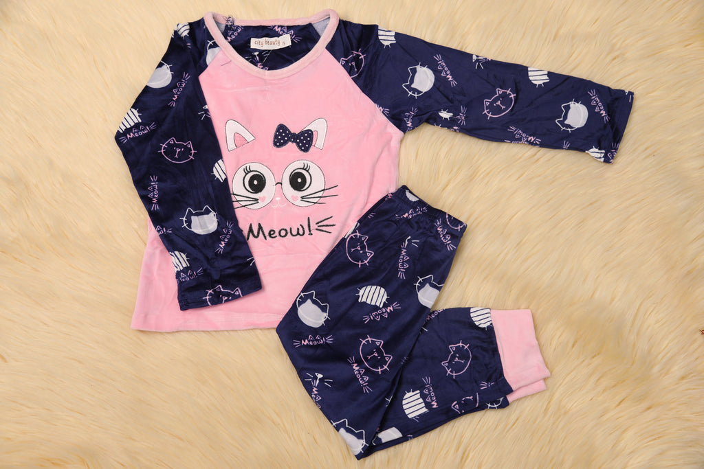 بجامة بنات كم طويل مخمل عمر 3