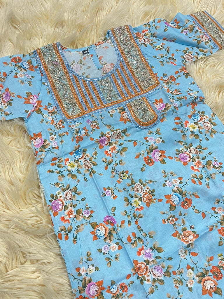 جلابيات قطن ديجتال للبنات الصغار / الطول 28 انش