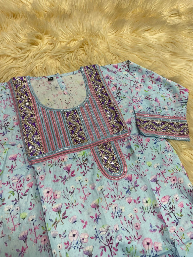 جلابيات قطن ديجتال للبنات الصغار / الطول 32 انش