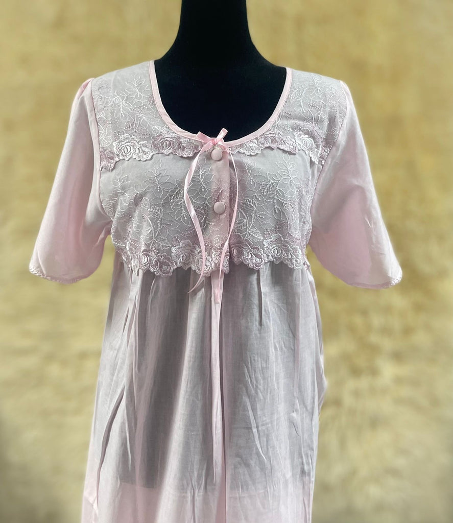 L جلابية قطن ليبرتي نص كم (لون بيبي بينك)